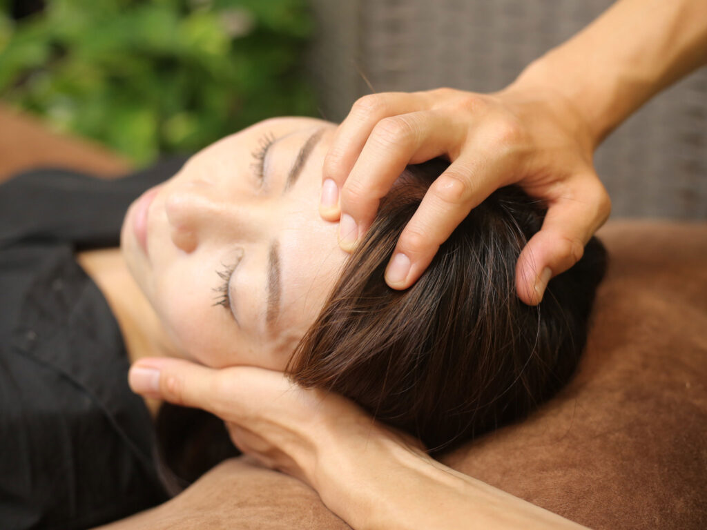 頭をゆっくり、心地よい強さでほぐしていくことにより、眠りが深くなると言われております。仕事や家事などに追われていると体が緊張状態から抜け出せずに自律神経が乱れて、リラックス出来なくなってしまします。これを改善するのに、頭をほぐすのは大変お勧めです!また、顔の筋肉がほぐれることにより、むくみなどがすっきりします!リクライニングソファーせ施術致します。
